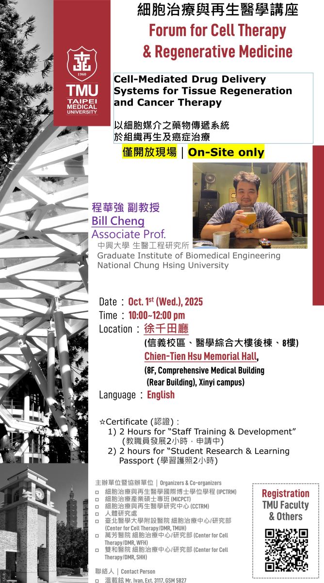 為促進本校暨附屬醫院之細胞治療與再生醫學學術研究發展,特持續舉辦本系列講座。